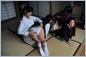 家竹の物差し、そしてパドル、それぞれ少女たちの若いお尻を虐める責め具を手にした二人は